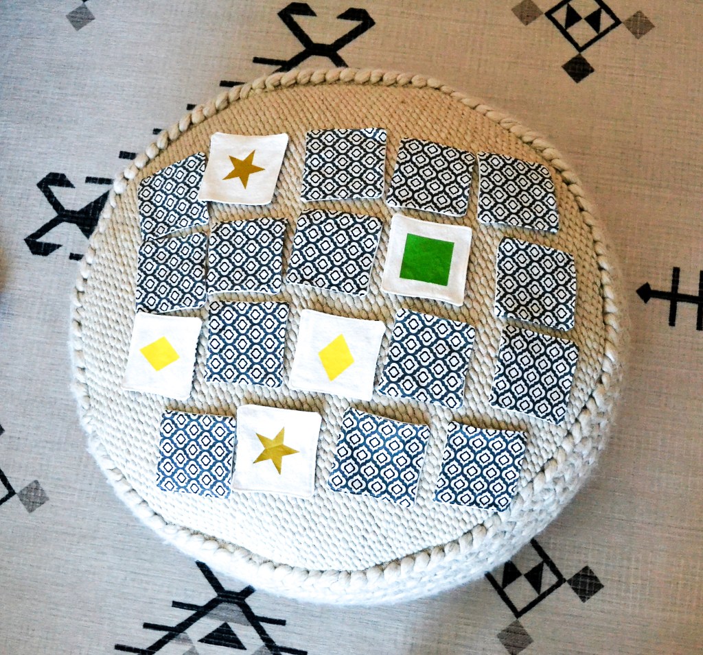 This memory game was so fun and simple to make. The most time consuming part was the cutting and sewing but was definitely not hard, considering I just made squares. You could easily make these cloth cards in to any shape you wanted though!