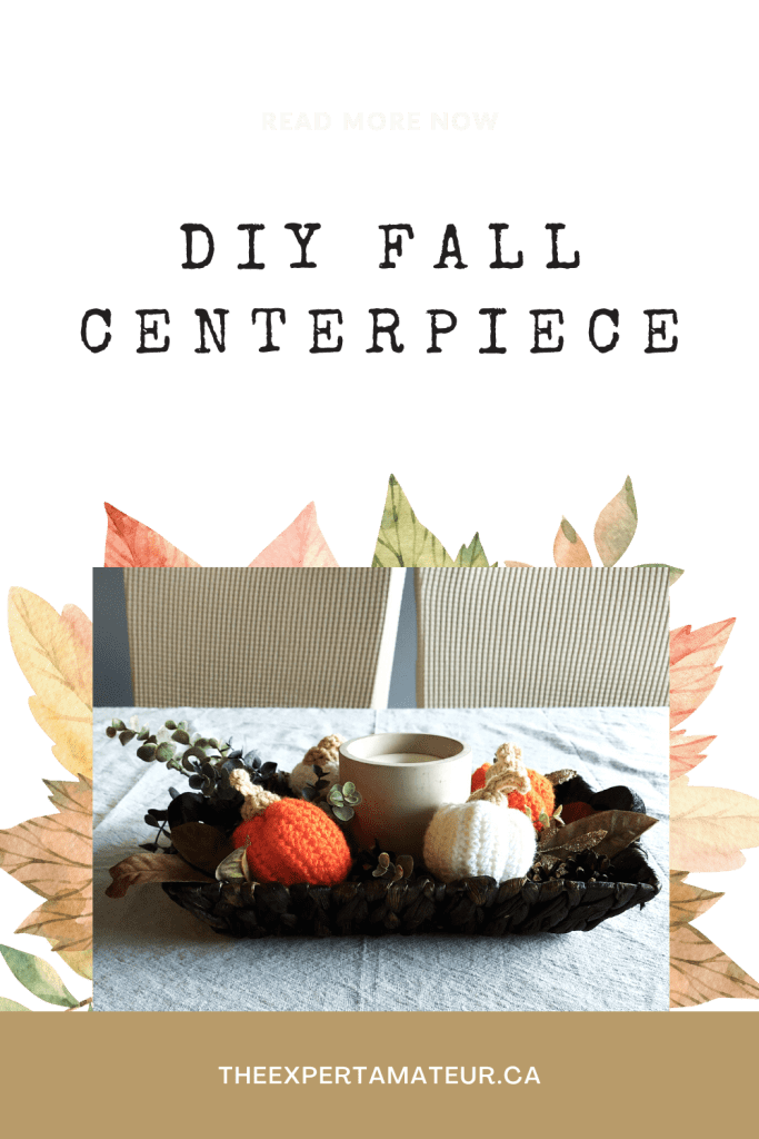 I then took my leftover florals from the wreath and used them in my table centerpiece. I got the basket from Michaels and the crochet pumpkins are a free pattern from Handy Little Me. They turned out so cute and it was very easy to follow her pattern! I consider myself a beginner in crochet so I think anyone would be able to create these cute little guys. Check out my DIY pumpkin blog for some more pumpkin inspiration and see how you can turn some cheap Dollarama pumpkins into something classy!