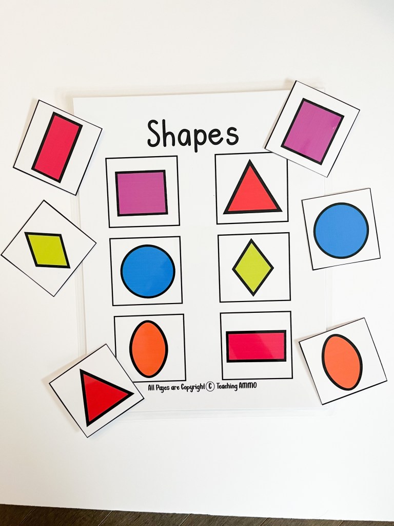 I laminated my worksheet pages and then I used the velcro strips and cut them into small pieces and applied them to the matching alphabet letters and pictures. I left the shapes without the velcro since it was just one page she can place them on the matching shape.