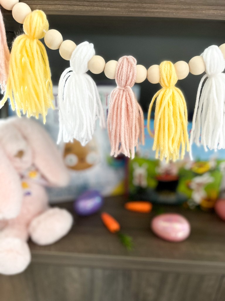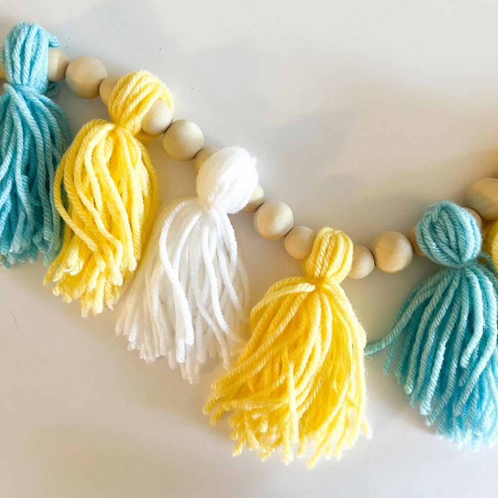 Step 2 – Once you have made all your tassels, use a yarn needle to thread the tassels and beads onto the string/yarn in the order you prefer! So many ways to customize your own.