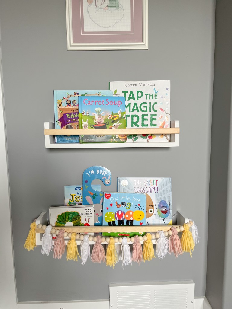 There are still somethings I would like to add in the entry of the room but for now I am so in love with this space! Laurel loves to play and look at books in her room and had a very easy time transitioning from her crib into her big girl bed!