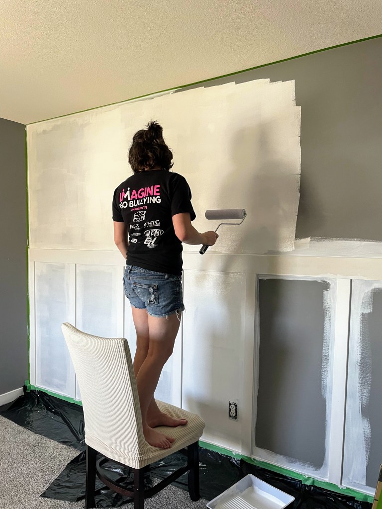 There were two different blogs that I read that helped me with how to do this. The one that was most useful was actually the Home Depot blog. It has a list of all the materials and steps to create an easy DIY board and batten wall. If you are interested in doing a board and batten wall I recommend you check out the Home Depot steps to build one.