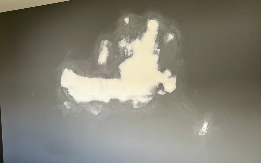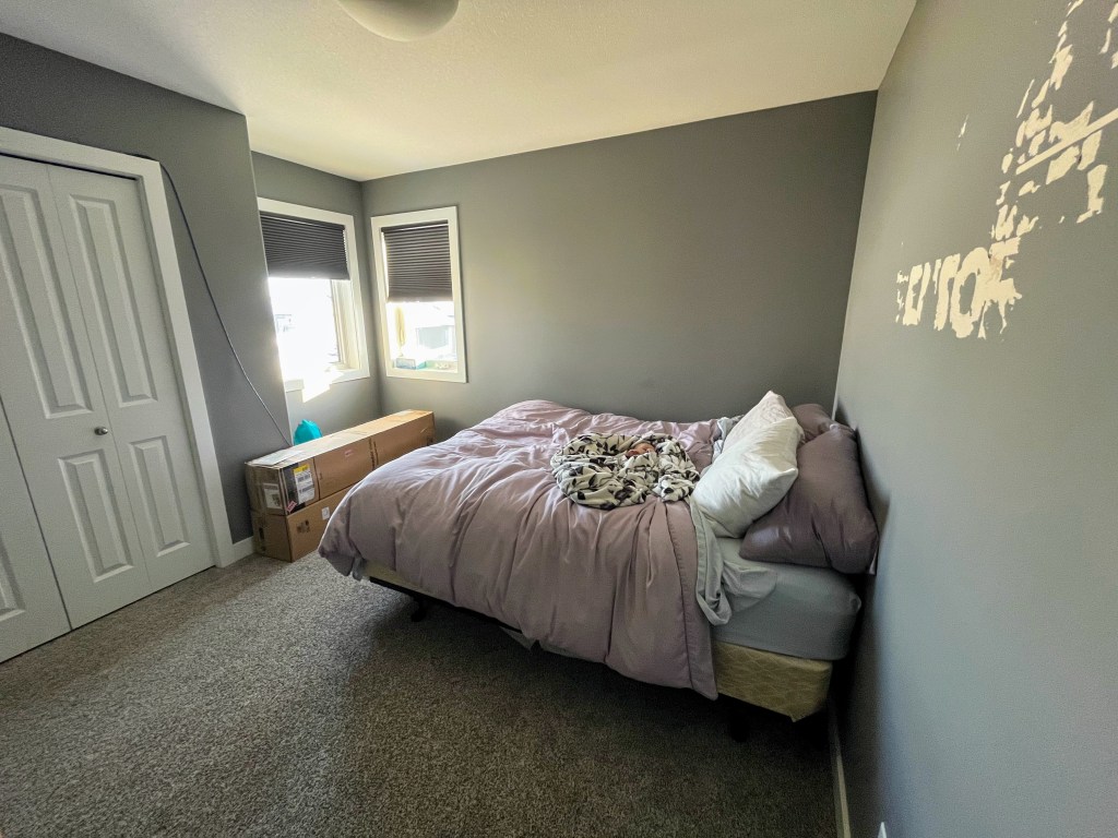 When we bought our house, the previous owners had a giant mural with their child’s name on the wall and when we went to remove it, a thin layer of dry wall peeled off with it. We left the wall for a year and a half, as we had siblings and family living with us on and off during that time and that was the guest bedroom. But ever since our second child Eleanora (Ellie) came into the picture, I knew I wanted to fix up the wall and turn the room into a fun, safe space for Laurel, as she needed to move out of the crib so Ellie could move in to the baby room. Thank goodness for my Father-in-law who knows how to mud and fix walls!! It just took me a year and a half to finally tackle the room and convert it into a toddler bedroom for our eldest daughter, Laurel, but the end result has me (and thankfully Laurel) very pleased!!