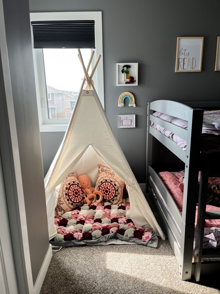The Puff Quilt – The puff blanket in the tent was something I made a few years before I had kids. I am not a sewer, but was a pretty easy project to complete.