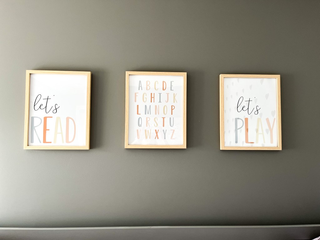 Let’s Read, Let’s Play and Alphabet Posters – I purchased these posters off of Etsy and then printed them online through Walmart. It is a bit cheaper than other online sites and then you just have to pick up when it is ready.