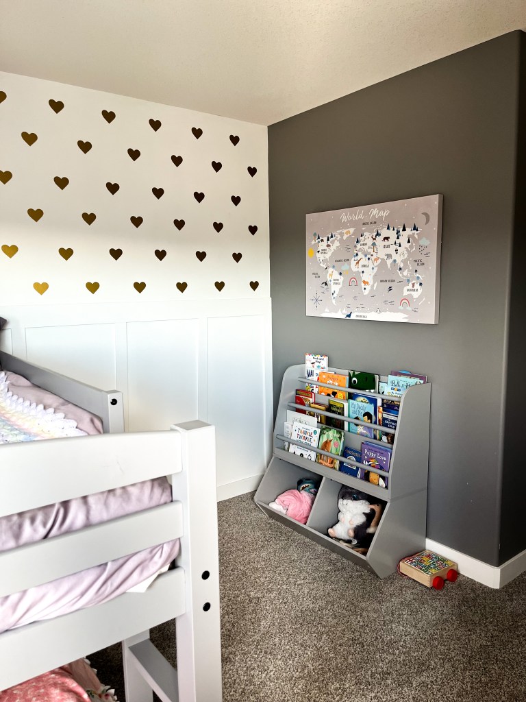 The Solar System Decals – Laurel has been super interested in space recently so I filled the underside of the top bunk with glow in the dark stars and planets! We go through the order of planets before she goes to sleep each night.